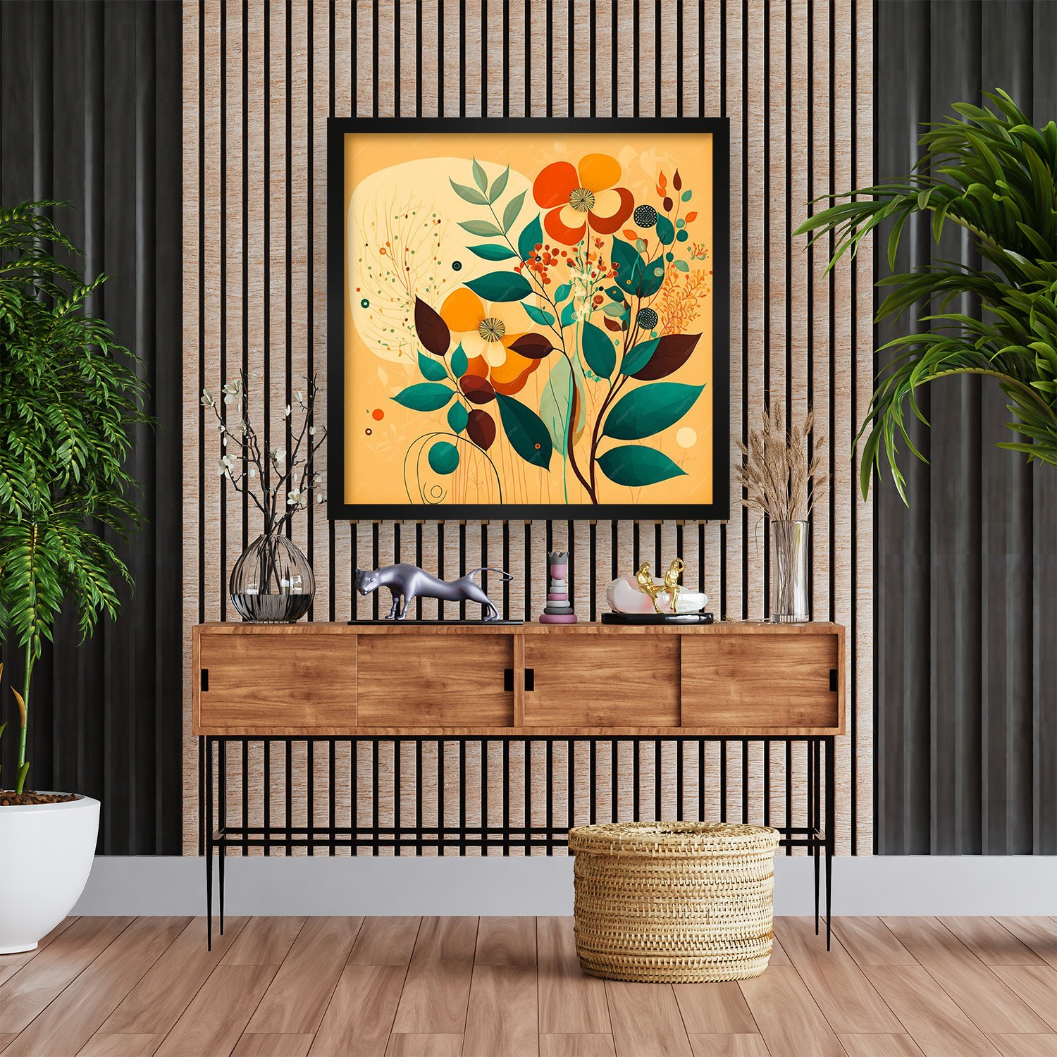 A colorful Buddha sits in a lotus flower garden Acrylic wall art