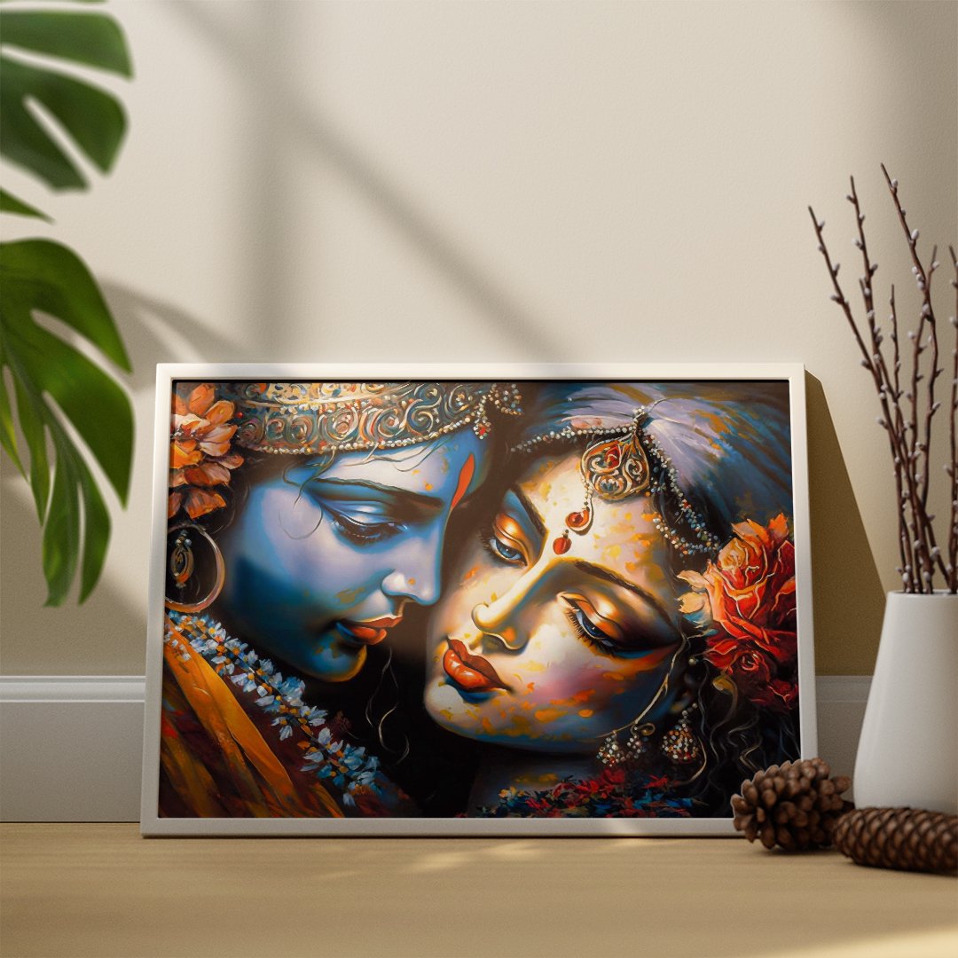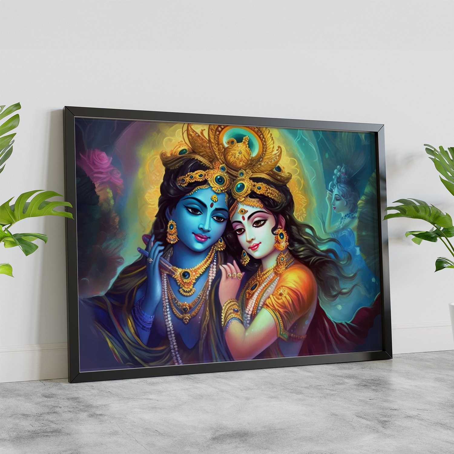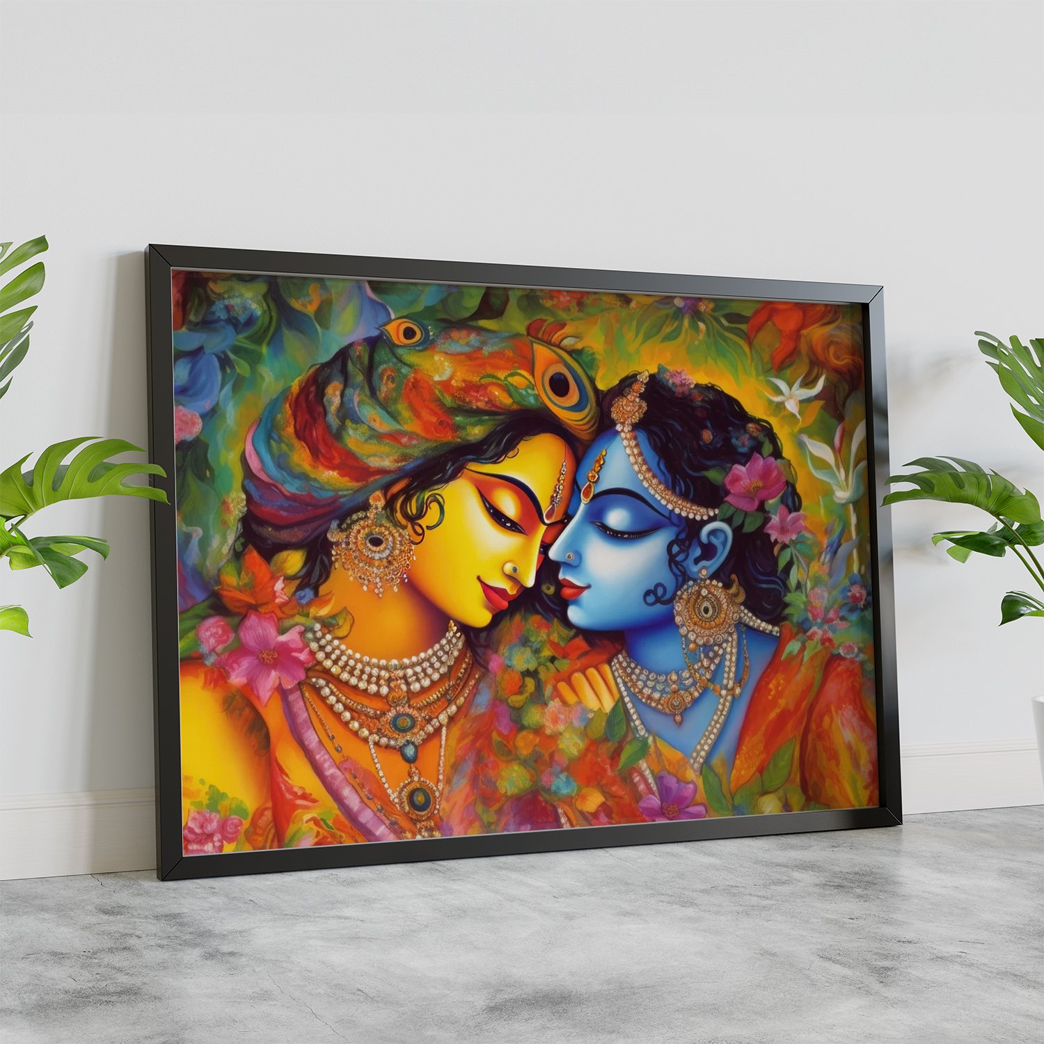 A Krishna painting Radha creates a serene and uplifting environment. - Symbolizes Eternal Love: