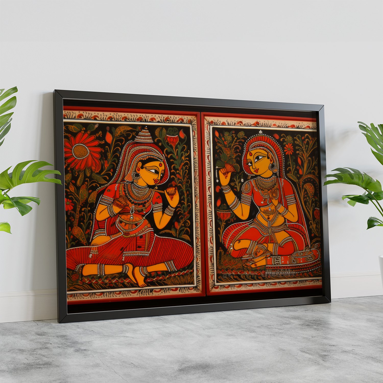 These artworks feature intricate details and vibrant colors, often inspired by classical Indian art forms.