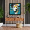 Acrylic wall painting of two women with the face painted in different colors for wal decoration