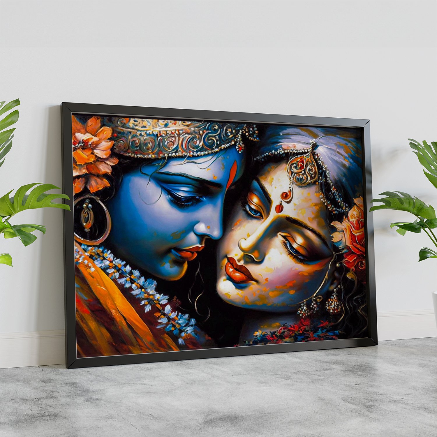 - White Frame: Embrace the purity and simplicity of divine love with our Lord Radha Krishna wall art framed in pristine white. The clean lines of the frame create a sense of purity and serenity, perfectly complementing the ethereal beauty of the artwork.