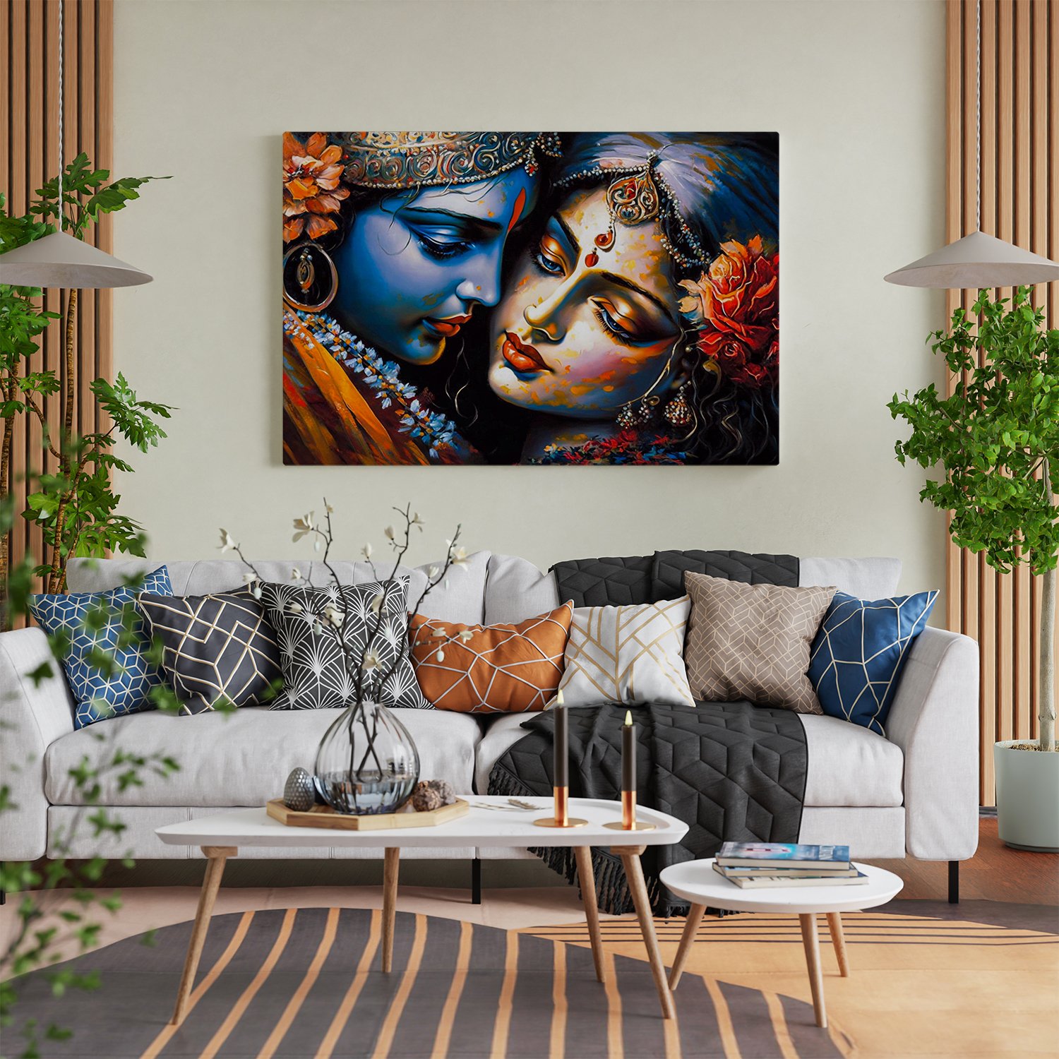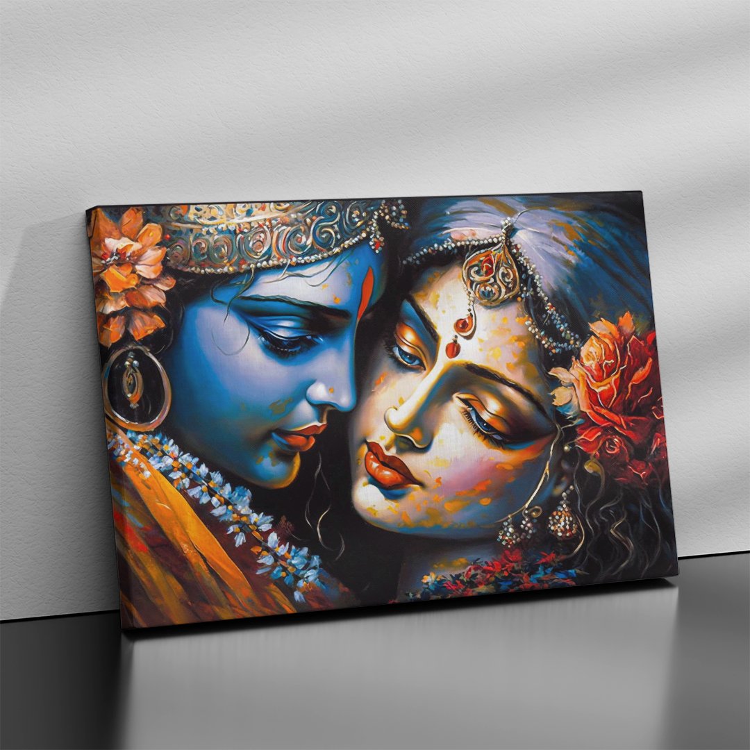 - Gallery Wrapped Stretched Canvas: Elevate your decor with a timeless masterpiece that transcends boundaries. Our Lord Radha Krishna wall art on gallery-wrapped stretched canvas offers a contemporary yet classic look, seamlessly blending into any modern or traditional setting.
