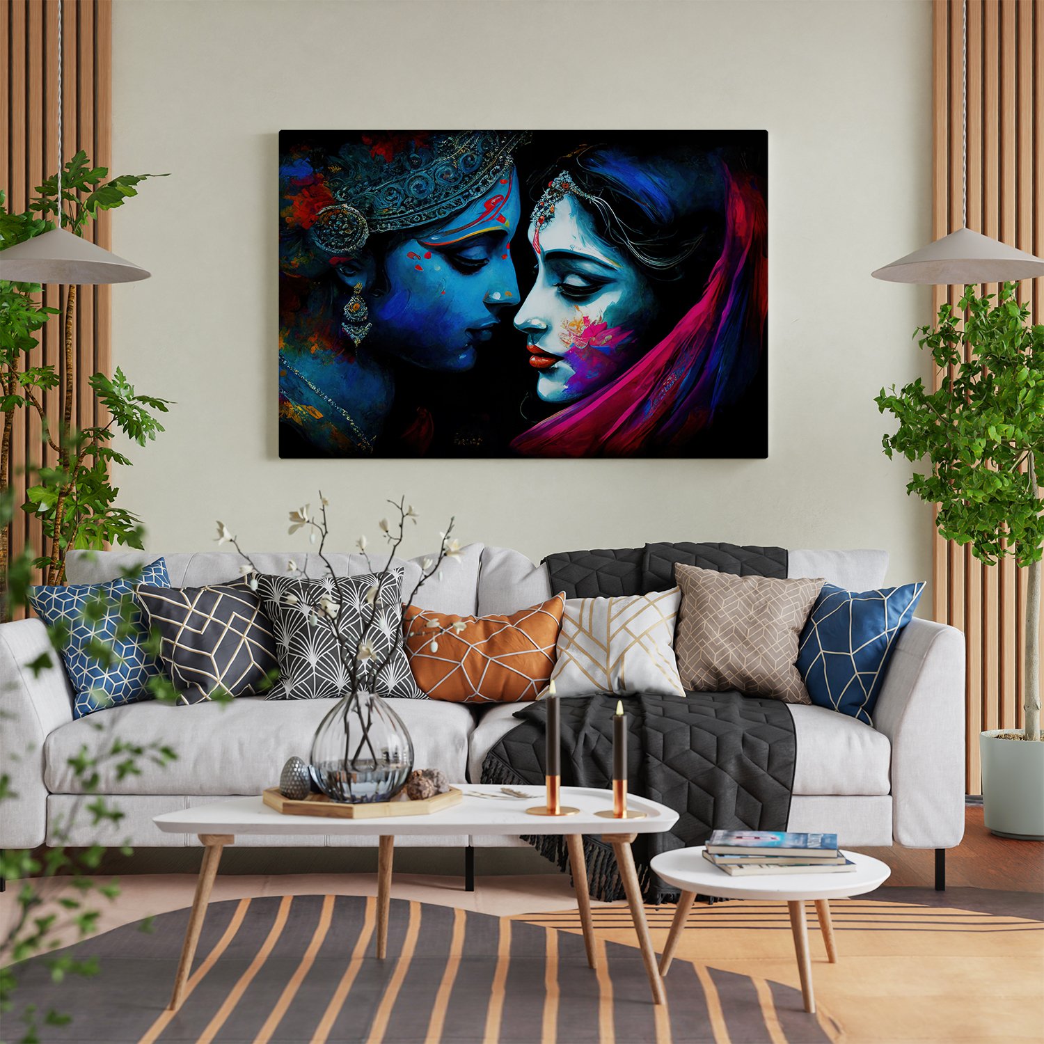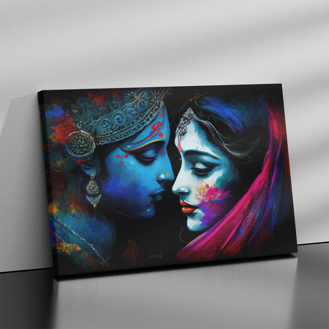 - Gallery Wrapped Stretched Canvas: Elevate your decor with a timeless masterpiece that transcends boundaries. Our Lord Radha Krishna wall art on gallery-wrapped stretched canvas offers a contemporary yet classic look, seamlessly blending into any modern or traditional setting.