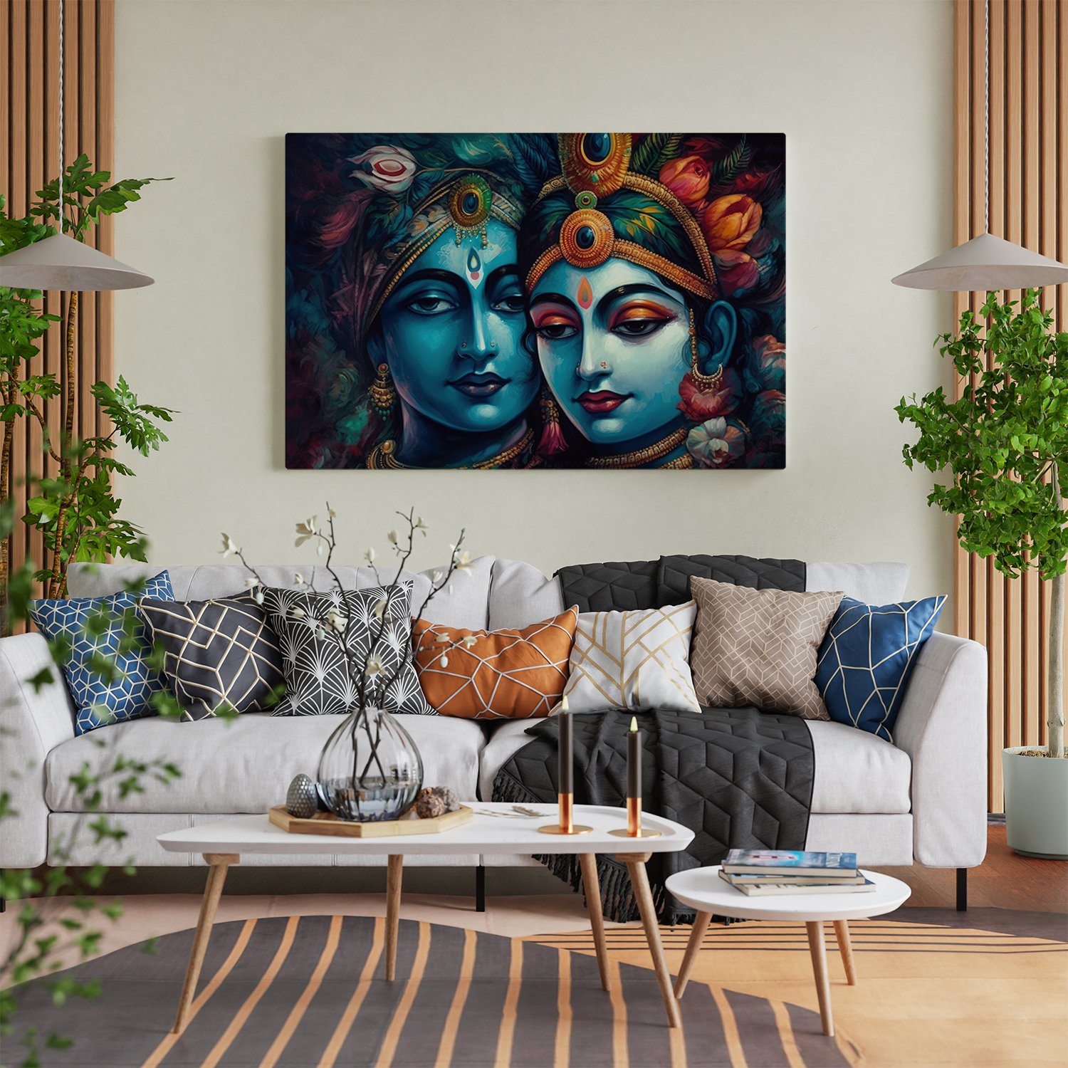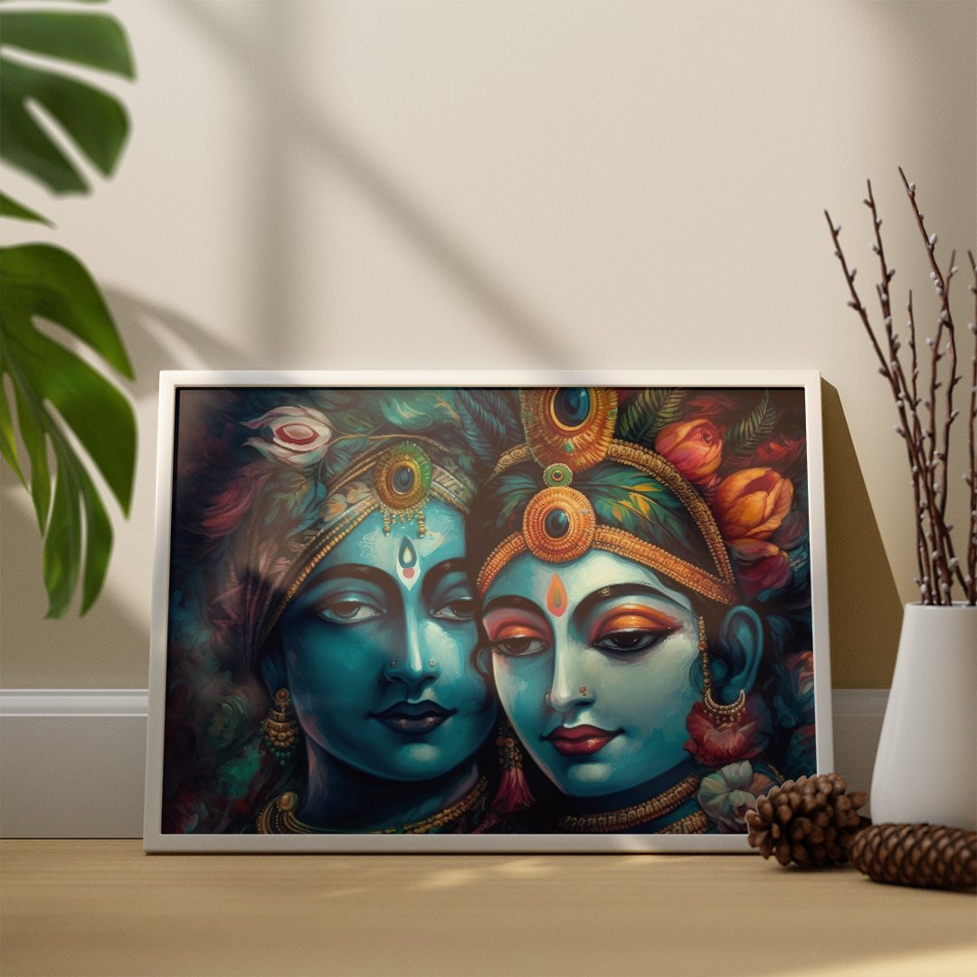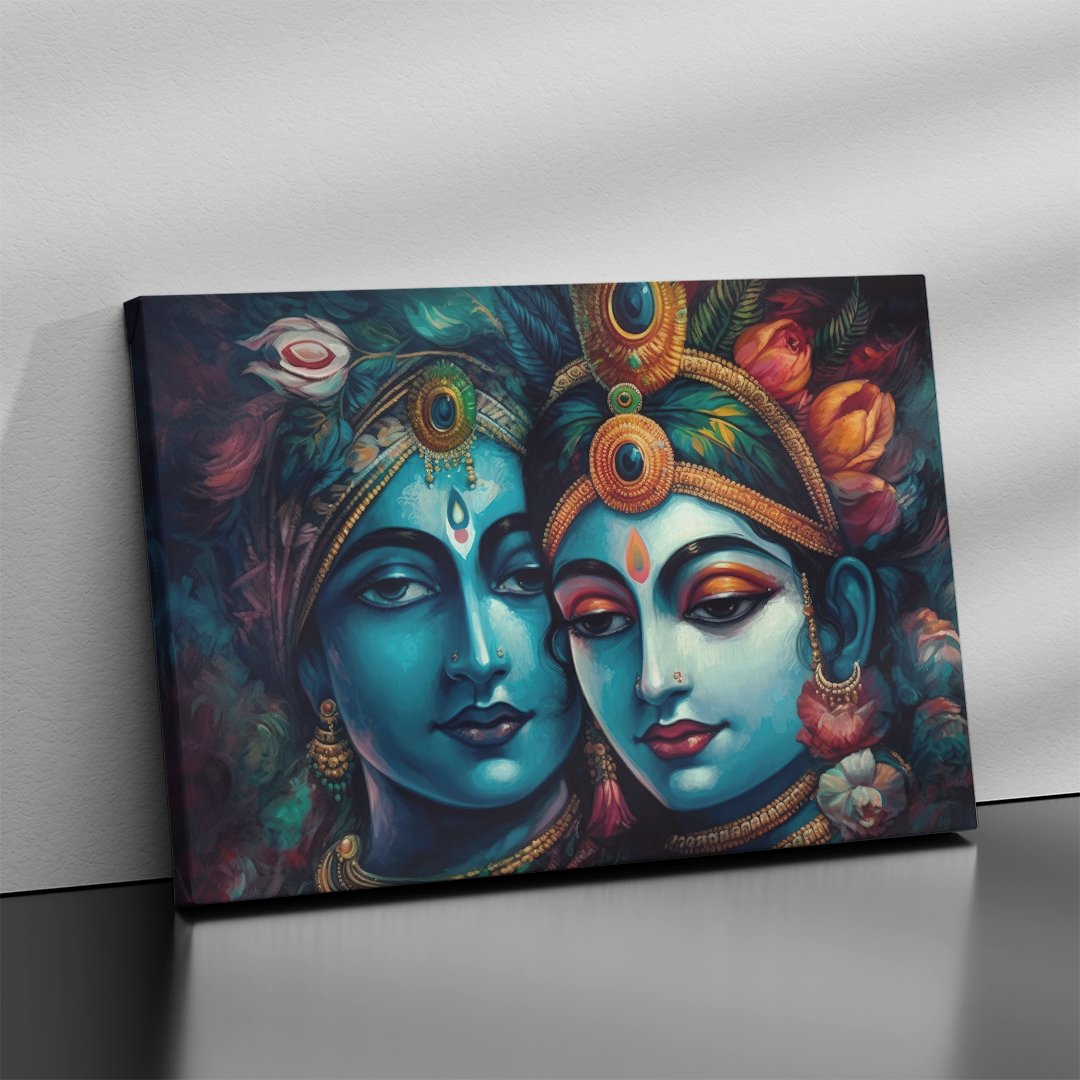 - Gallery Wrapped Stretched Canvas: Elevate your decor with a timeless masterpiece that transcends boundaries. Our Lord Radha Krishna wall art on gallery-wrapped stretched canvas offers a contemporary yet classic look, seamlessly blending into any modern or traditional setting.