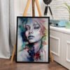 Acrylic wall painting of two women with the face painted in different colors for wal decoration