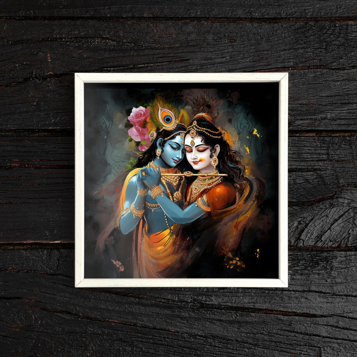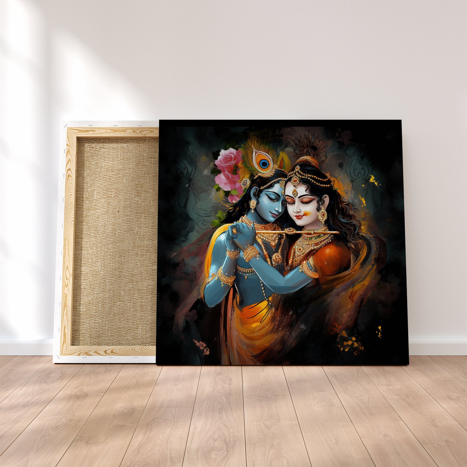 - Gallery Wrapped Stretched Canvas: Elevate your decor with a timeless masterpiece that transcends boundaries. Our Lord Radha Krishna wall art on gallery-wrapped stretched canvas offers a contemporary yet classic look, seamlessly blending into any modern or traditional setting.