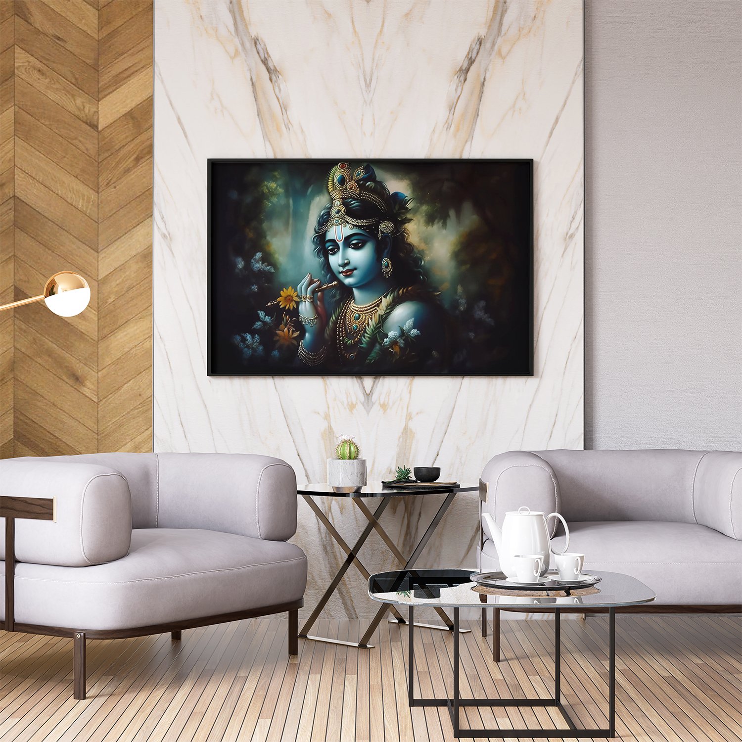 - White Frame: Embrace the purity and simplicity of divine love with our Lord Radha Krishna wall art framed in pristine white. The clean lines of the frame create a sense of purity and serenity, perfectly complementing the ethereal beauty of the artwork.