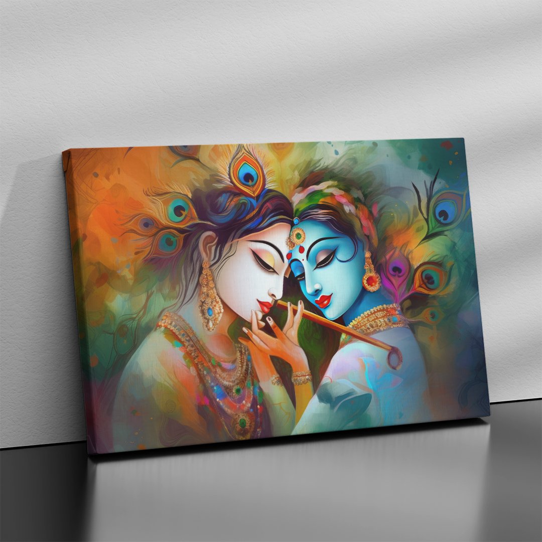 - Gallery Wrapped Stretched Canvas: Elevate your decor with a timeless masterpiece that transcends boundaries. Our Lord Radha Krishna wall art on gallery-wrapped stretched canvas offers a contemporary yet classic look, seamlessly blending into any modern or traditional setting.