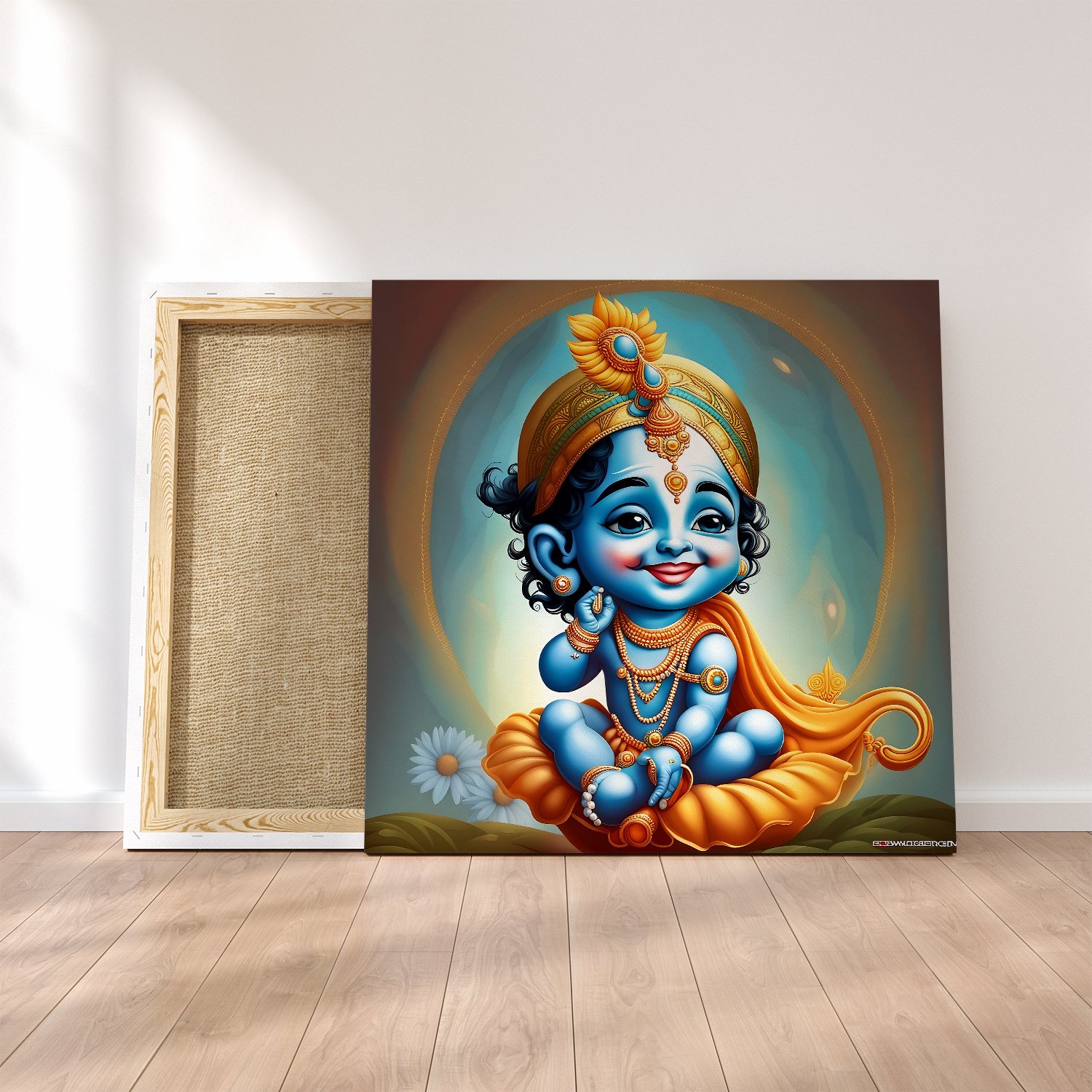 - Gallery Wrapped Stretched Canvas: Elevate your decor with a timeless masterpiece that transcends boundaries. Our Lord Radha Krishna wall art on gallery-wrapped stretched canvas offers a contemporary yet classic look, seamlessly blending into any modern or traditional setting.