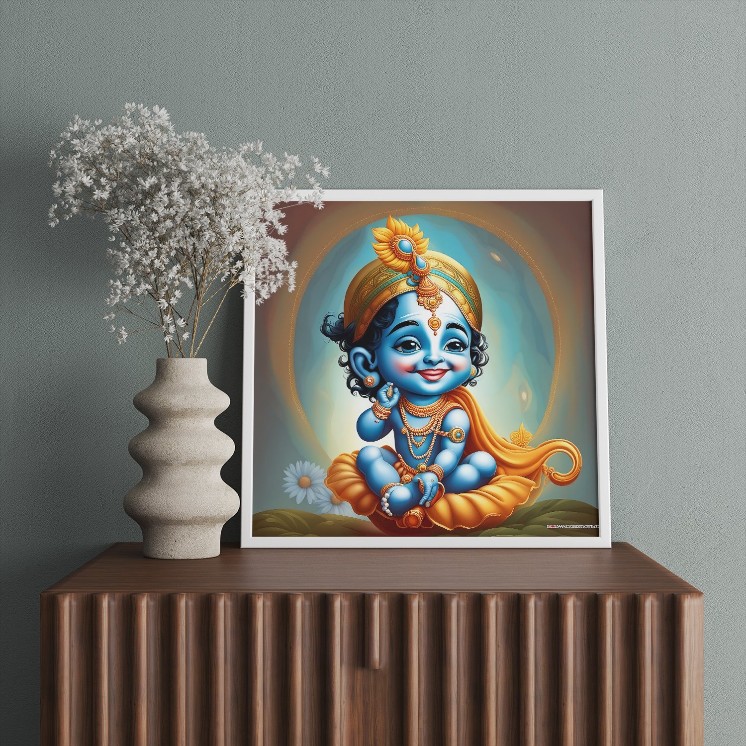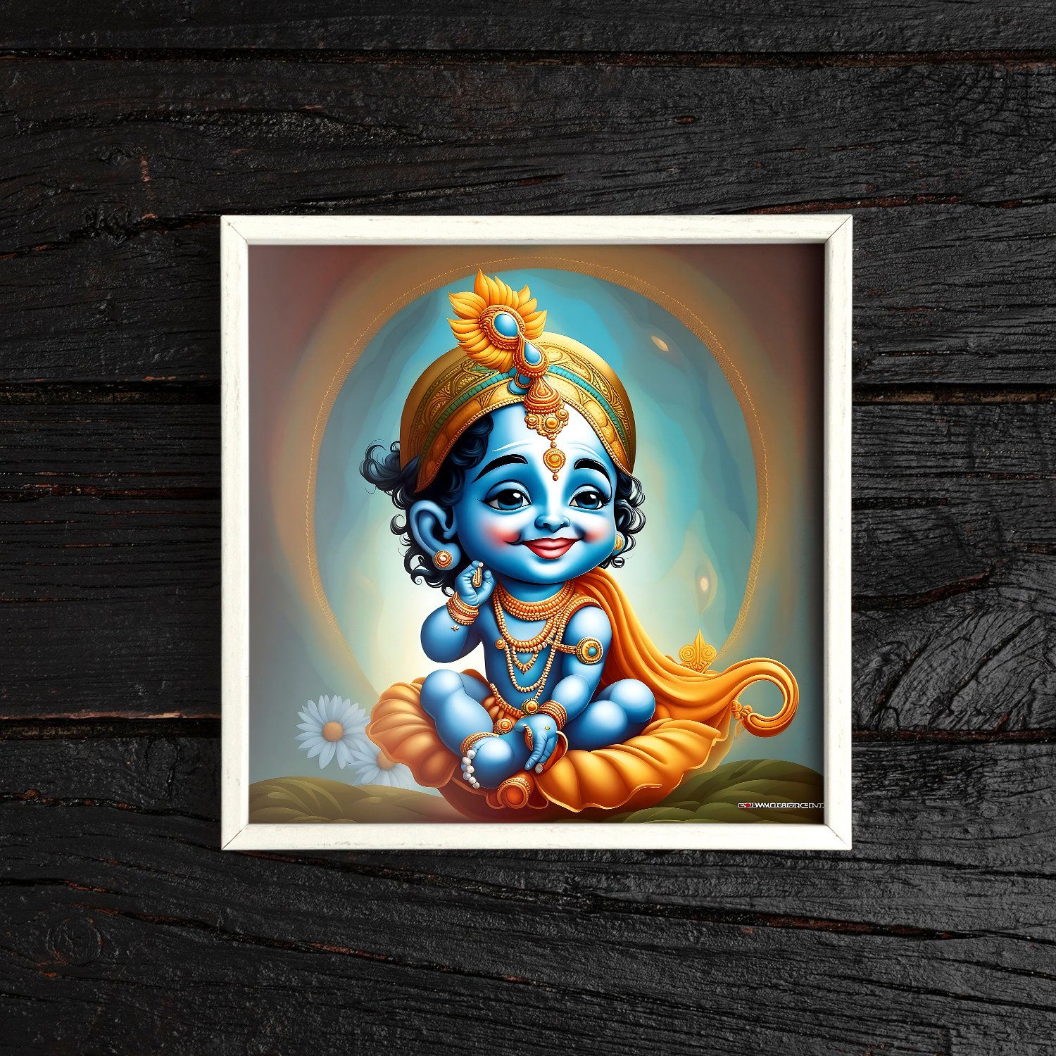 - White Frame: Embrace the purity and simplicity of divine love with our Lord Radha Krishna wall art framed in pristine white. The clean lines of the frame create a sense of purity and serenity, perfectly complementing the ethereal beauty of the artwork.